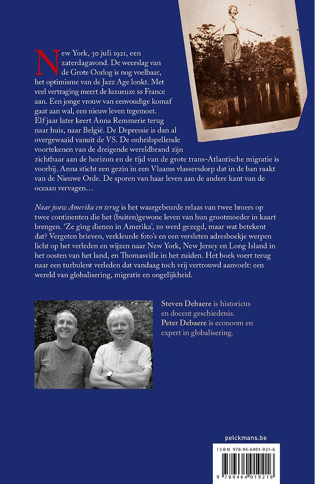 Naar jouw Amerika en terug is het waargebeurde relaas van twee broers op twee continenten die het (buiten)gewone leven van hun grootmoeder in kaart brengen. ‘Ze ging dienen in Amerika’, zo werd gezegd, maar wat betekent dat? Vergeten brieven, verkleurde foto’s en een versleten adresboekje werpen licht op het verleden en wijzen naar New York, New Jersey en Long Island in het oosten van het land, en Thomasville in het zuiden. Het boek voert terug naar een turbulent verleden dat vandaag toch vrij vertrouwd aanvoelt: een wereld van globalisering, migratie en ongelijkheid.