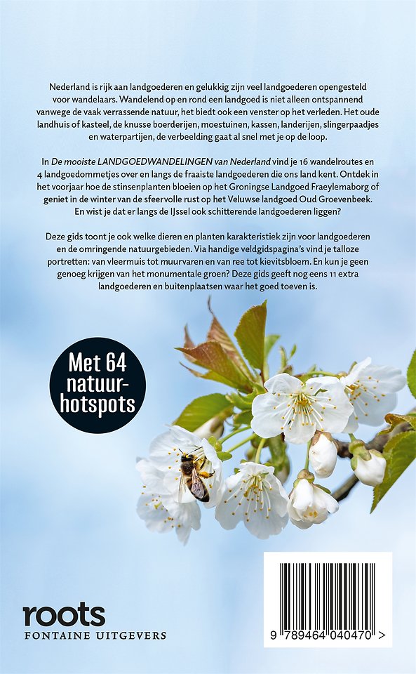 Nederland is rijk aan landgoederen en gelukkig zijn veel landgoederen opengesteld voor wandelaars. In 'De mooiste landgoedwandelingen van Nederland' vind je 16 wandelroutes en 4 landgoedommetjes over en langs de fraaiste landgoederen die ons land kent. Ontdek in het voorjaar hoe de stinsenplanten bloeien op het Groningse Landgoed Fraeylemaborg of geniet in de winter van de sfeervolle rust op het Veluwse landgoed Oud-Groevenbeek.