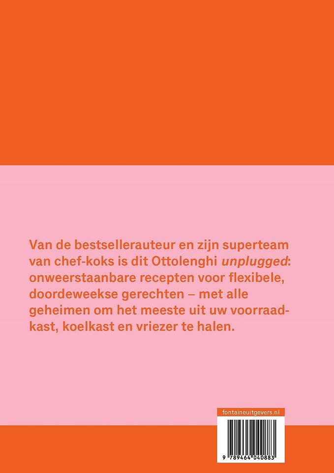Van bestsellerauteur Yotam Ottolenghi en zijn superteam van chef-koks is dit Ottolenghi unplugged: onweerstaanbare recepten voor flexibele, doordeweekse gerechten - met alle geheimen om het meeste uit je voorraadkast, koelkast en vriezer te halen. Dit is de OTK-manier om iedere dag heerlijk en stressvrij te eten.