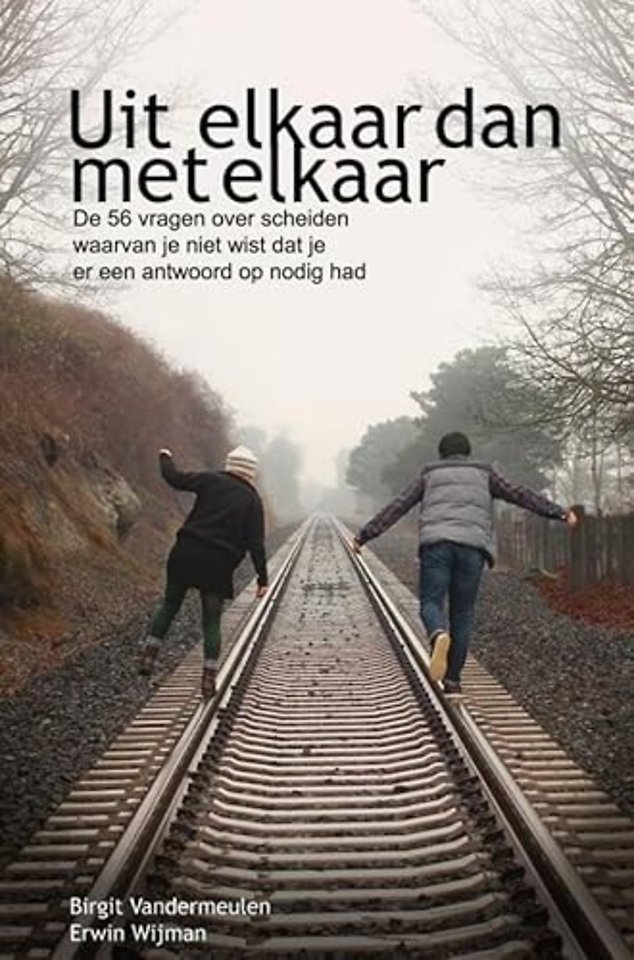 Uit elkaar dan met elkaar, de 56 vragen waarvan je niet wist dat je er een antwoord op nodig had, geeft je antwoorden op 56 veelgestelde vragen, die de auteurs, Erwin en Birgit, zichzelf ook gesteld hebben tijdens hun eigen scheidingen of die ze van anderen hoorden. Zo hopen zij duidelijk te maken dat helemaal niets raar is aan wat je doet of denkt, dat het logisch is om het niet te weten, dat scheiden ingewikkeld kan zijn. Het opstarten van een nieuw leven kan juist eenvoudig zijn. Of precies andersom.