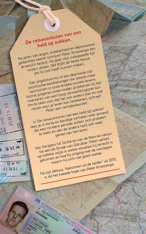In ‘De reisavonturen van een held op sokken’ lees je in korte en bondige verhalen over iemand die een mindere periode achter zich probeert te laten en aan de andere kant ook weer geniet van het leven.