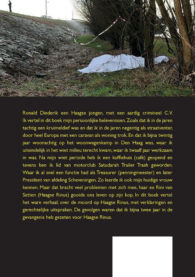Ronald Diederik een Haagse jongen, met een aardig crimineel C.V. ik beschrijf in dit boek mijn leven op het woonwagenkamp in Den Haag en de periode dat ik met handel door Europa trok met een caravan. Ook de tijd dat ik in de wiet productie en handel zat en dat ik uiteindelijk bij de motorclub Satudarah terecht kwam.