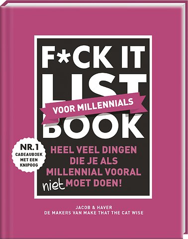Een f*ck-it list, elke millennial heeft er een nodig! Altijd druk en altijd “aan” staan? Tijd om dat los te laten. Met dit boek geen eindeloze to-do’s, maar een ode aan minder moeten. Want soms is het prima om de sportschool over te slaan, de blauwe vinkjes te negeren of gewoon een hele dag niets te doen. Hét nummer 1 cadeauboek met een knipoog!