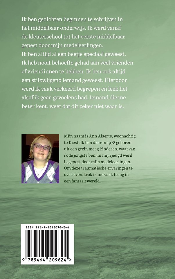 Mijn naam is Ann Alaerts, woonachtig te Diest. Ik ben daar in 1978 geboren uit een gezin met 3 kinderen, waarvan ik de jongste ben. In mijn jeugd werd ik gepest door mijn medeleerlingen. Om deze traumatische ervaringen te overleven, trok ik me vaak terug in een fantasiewereld.