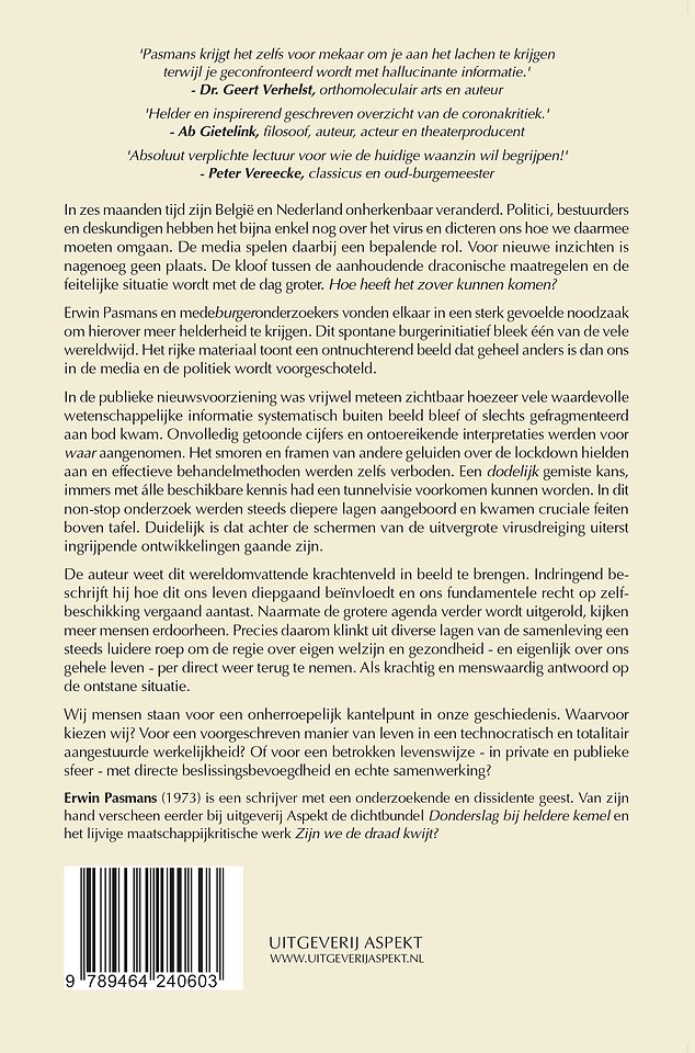 In zes maanden tijd waren België en Nederland onherkenbaar veranderd. Politici, bestuurders en deskundigen hadden het bijna enkel nog over het virus en dicteerden ons hoe we daarmee moesten omgaan. De media speelden daarbij een bepalende rol. Voor nieuwe inzichten was nagenoeg geen plaats. De kloof tussen de aanhoudende draconische maatregelen en de feitelijke situatie werd met de dag groter. Hoe heeft het zover kunnen komen?