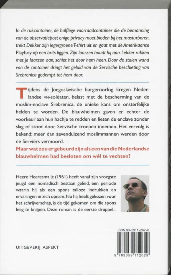 Tijdens de Joegoslavische burgeroorlog kregen Nederlandse VN-soldaten, belast met de bescherming van de moslim-enclave Srebrenica, de unieke kans om onsterfelijke helden te worden. De blauwhelmen gaven er echter de voorkeur aan hun hachje te redden en lieten de enclave zonder slag of stoot door Servische troepen innemen. Het vervolg is bekend: meer dan zevenduizend moslimmannen werden door de Serviërs vermoord. Maar wat zou er gebeurd zijn als een van die Nederlandse blauwhelmen had besloten om wél te vechten?