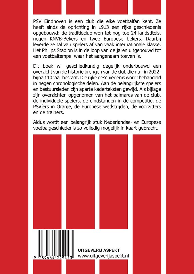 Dit boek geeft een overzicht van de historie van de club, die nu – in 2022 – bijna 110 jaar bestaat. Die rijke geschiedenis wordt behandeld in negen chronologische delen. Aan de belangrijkste spelers en bestuursleden zijn aparte kaderteksten gewijd. Als bijlage zijn overzichten opgenomen van het palmares van de club, de individuele spelers, de eindstanden in de competitie, de PSV’ers in Oranje, de Europese wedstrijden, de voorzitters en de trainers.