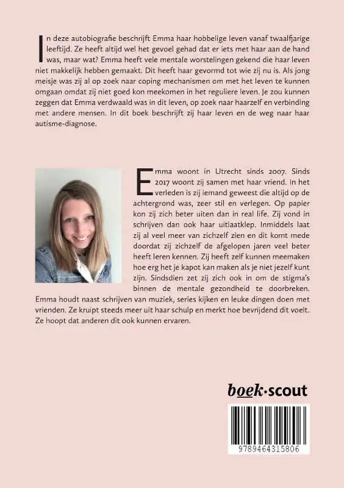 In deze autobiografie beschrijft Emma haar hobbelige leven vanaf twaalfjarige leeftijd. Ze heeft altijd wel het gevoel gehad dat er iets met haar aan de hand was, maar wat? Emma heeft vele mentale worstelingen gekend die haar leven niet makkelijk hebben gemaakt. Dit heeft haar gevormd tot wie zij nu is. Als jong meisje was zij al op zoek naar coping mechanismen om met het leven te kunnen omgaan omdat zij niet goed kon meekomen in het reguliere leven. Je zou kunnen zeggen dat Emma verdwaald was in dit leven, op zoek naar haarzelf en verbinding met andere mensen. In dit boek beschrijft zij haar leven en de weg naar haar autisme-diagnose.