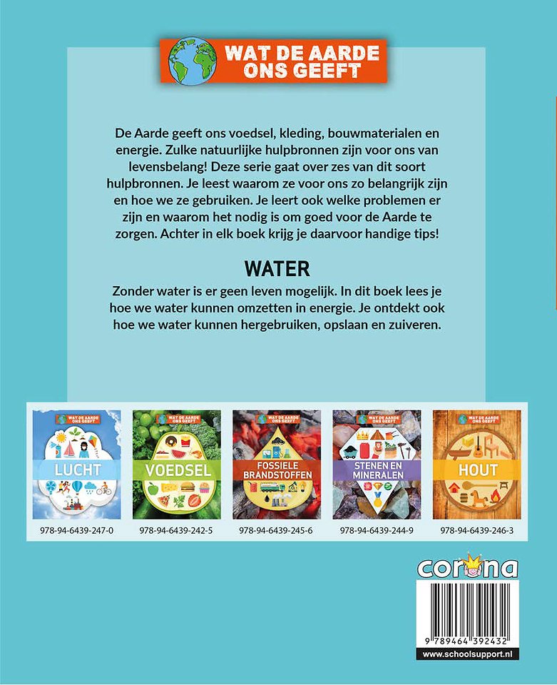 Water is belangrijk voor de Aarde. Zonder water is er geen leven mogelijk. In dit boek lees je hoe we water kunnen omzetten in energie. Je ontdekt ook hoe we water kunnen hergebruiken, opslaan en zuiveren.