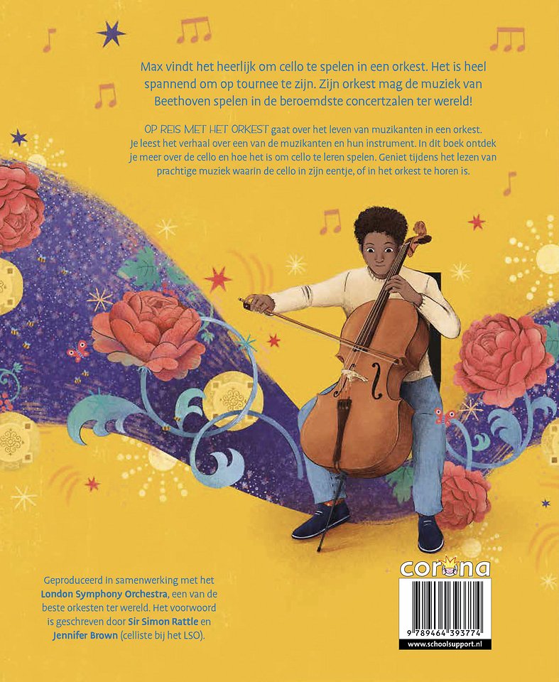 'Op reis met het orkest' gaat over het leven van muzikanten in een orkest. Je leest het verhaal over een van de muzikanten en hun instrument. In dit boek ontdek je meer over de cello en hoe het is om cello te leren spelen. Geniet tijdens het lezen van prachtige muziek waarin de cello in zijn eentje, of in het orkest te horen is.