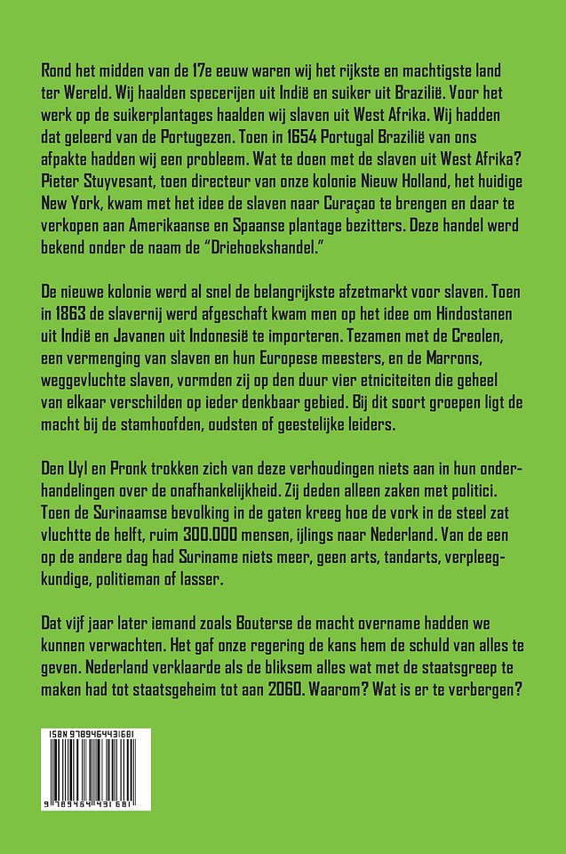 Den Uyl en Pronk deden in 1975, ten tijde van de onderhandelingen over de onafhankelijkheid van Suriname, echter alles af met de paar politici die het land kende. Zij hadden geen enkel begrip van de werkelijke situatie. Toen het Surinaamse volk in de gaten kreeg wat precies afgesproken was nam de helft van de bevolking, ruim 300.000 mensen, ijlings de benen naar Nederland. Suriname werd van de ene dag op de andere een leeg land zonder artsen, tandartsen, verpleegkundigen, loodgieters, politiemannen, armoede vierde hoogtij en Nederland keek de andere kant op. Na vijf jaar ploeteren zonder uitzicht greep het Surinaamse leger, met Desi Bouterse aan het hoofd, de macht. Wat was het alternatief? Nederland keek de andere kant op. Waar was de politiek? Waar waren Joop den Uyl en Jan Pronk?