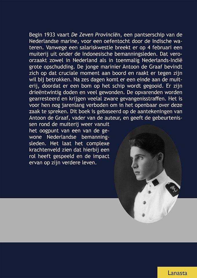 Begin 1933 vaart De Zeven Provinciën, een pantserschip van de Nederlandse marine, door de Indische wateren als er muiterij uitbreekt. Dat veroorzaakt zowel in Nederland als Nederlands-Indië grote opschudding. Na zes dagen maakt de regering er een einde aan door een bom op het schip te gooien. Er zijn drieëntwintig doden en veel gewonden. Opvarenden worden gearresteerd en krijgen zware gevangenisstraffen. Een van die opvarenden is Antoon de Graaf, vader van de auteur.