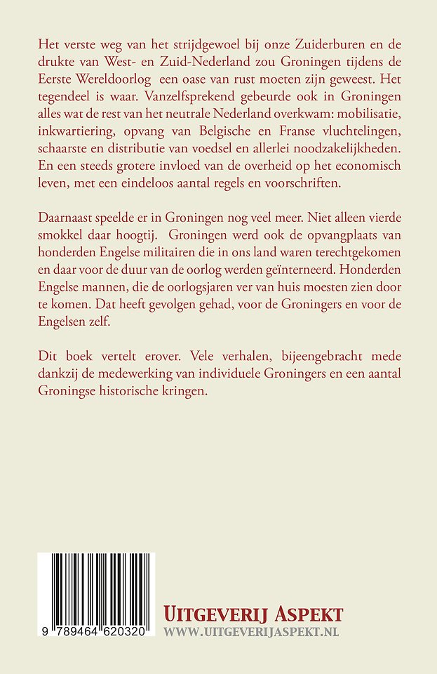 Vanzelfsprekend gebeurde ook in Groningen alles wat de rest van het neutrale Nederland overkwam: mobilisatie, inkwartiering, opvang van Belgische en Franse vluchtelingen, schaarste en distributie van voedsel en allerlei noodzakelijkheden. En ook in Groningen kreeg de overheid een steeds grotere invloed op het economisch leven, met een eindeloos aantal regels en voorschriften als gevolg. Daarnaast speelde er in Groningen nog veel meer. Niet alleen vierde smokkel daar hoogtij, Groningen werd ook de opvangplaats van honderden Engelse militairen die hier voor de duur van de oorlog werden geïnterneerd. Honderden Engelse mannen moesten de oorlogsjaren ver van huis zien door te komen. Dat heeft gevolgen gehad, voor de Groningers en voor de Engelsen zelf.