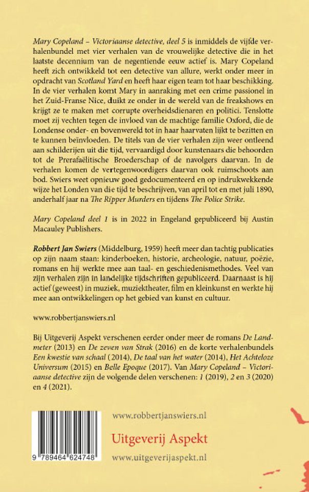 Mary Copeland - Victoriaanse detective, deel 5 is inmiddels de vijfde verhalenbundel met vier verhalen van de vrouwelijke detective die in het laatste decennium van de negentiende eeuw actief is.