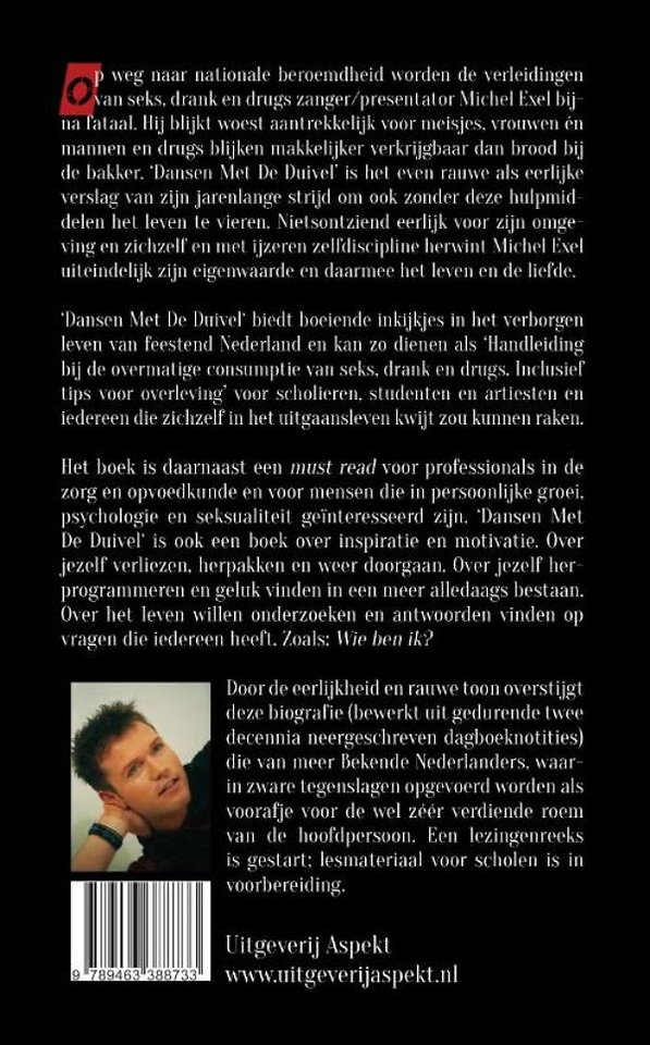 Op weg naar nationale beroemdheid worden de verleidingen van seks, drank en drugs zanger/presentator Michel Exel bijna fataal. Hij blijkt woest aantrekkelijk voor meisjes, vrouwen én mannen en drugs blijken makkelijker verkrijgbaar dan brood bij de bakker. 'Dansen Met De Duivel' is het even rauwe als eerlijke verslag van zijn jarenlange strijd om ook zonder deze hulpmiddelen het leven te vieren. Nietsontziend eerlijk voor zijn omgeving en zichzelf en met ijzeren zelfdiscipline herwint Michel Exel uiteindelijk zijn eigenwaarde en daarmee het leven en de liefde.