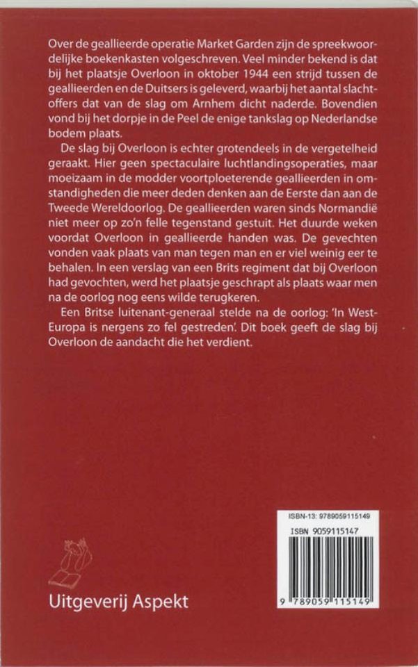 Over de geallieerde operatie Market Garden zijn de spreekwoordelijke boekenkasten volgeschreven. Veel minder bekend is dat bij het plaatsje Overloon in oktober 1944 een strijd tussen de geallieerden en de Duitsers is geleverd, waarbij het aantal slachtoffers dat van de slag om Arnhem dicht naderde. Bovendien vond bij het dorpje in de Peel de enige tankslag op Nederlandse bodem plaats.