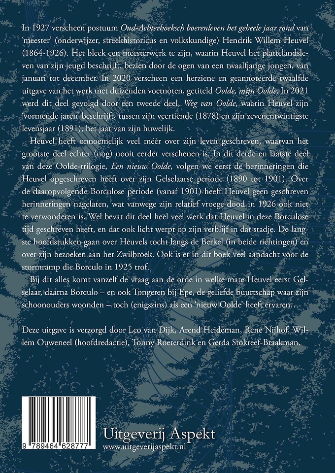 Heuvel heeft onnoemelijk veel méér over zijn leven geschreven, waarvan het grootste deel echter (nog) nooit eerder verschenen is. In dit derde en laatste deel van deze Oolde-trilogie, Een nieuw Oolde, volgen we eerst de herinneringen die Heuvel opgeschreven heeft over zijn Gelselaarse periode (1890 tot 1901). Over de daaropvolgende Borculose periode (vanaf 1901) heeft Heuvel geen geschreven herinneringen nagelaten, wat vanwege zijn relatief vroege dood in 1926 ook niet te verwonderen is. Wel bevat dit deel heel veel werk dat Heuvel in deze Borculose tijd geschreven heeft, en dat ook licht werpt op zijn verblijf in dat stadje. De langste hoofdstukken gaan over Heuvels tocht langs de Berkel (in beide richtingen) en over zijn bezoeken aan het Zwilbroek. Ook is er in dit boek veel aandacht voor de stormramp die Borculo in 1925 trof.
