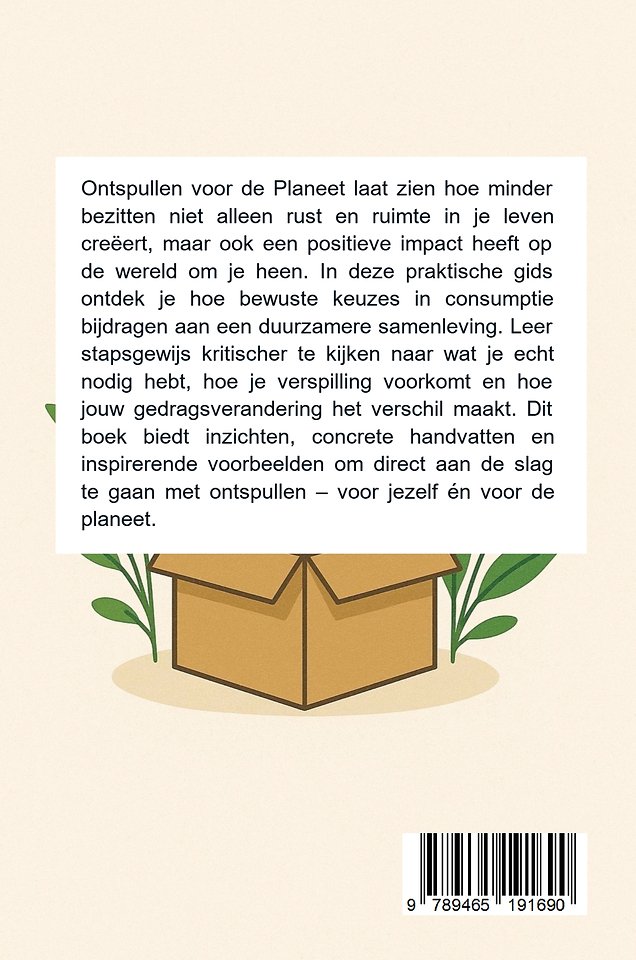 Ontspullen voor de Planeet laat zien hoe minder bezitten niet alleen rust en ruimte in je leven creëert, maar ook een positieve impact heeft op de wereld om je heen. In deze praktische gids ontdek je hoe bewuste keuzes in consumptie bijdragen aan een duurzamere samenleving. Leer stapsgewijs kritischer te kijken naar wat je echt nodig hebt, hoe je verspilling voorkomt en hoe jouw gedragsverandering het verschil maakt. Dit boek biedt inzichten, concrete handvatten en inspirerende voorbeelden om direct aan de slag te gaan met ontspullen – voor jezelf én voor de planeet.