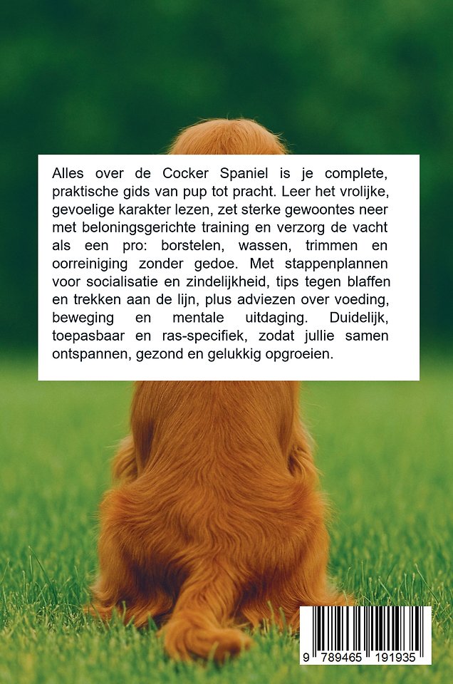 Alles over de Cocker Spaniel is je complete, praktische gids van pup tot pracht. Leer het vrolijke, gevoelige karakter lezen, zet sterke gewoontes neer met beloningsgerichte training en verzorg de vacht als een pro: borstelen, wassen, trimmen en oorreiniging zonder gedoe. Met stappenplannen voor socialisatie en zindelijkheid, tips tegen blaffen en trekken aan de lijn, plus adviezen over voeding, beweging en mentale uitdaging. Duidelijk, toepasbaar en ras-specifiek zodat jullie samen ontspannen, gezond en gelukkig opgroeien.