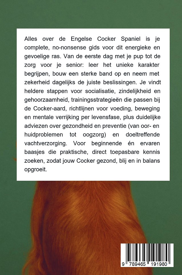 Alles over de Engelse Cocker Spaniel is je complete, no-nonsense gids voor dit energieke en gevoelige ras. Van de eerste dag met je pup tot de zorg voor je senior: leer het unieke karakter begrijpen, bouw een sterke band op en neem met zekerheid dagelijks de juiste beslissingen. Je vindt heldere stappen voor socialisatie, zindelijkheid en gehoorzaamheid, trainingsstrategieën die passen bij de Cocker-aard, richtlijnen voor voeding, beweging en mentale verrijking per levensfase, plus duidelijke adviezen over gezondheid en preventie (van oor- en huidproblemen tot oogzorg) en doeltreffende vachtverzorging. Voor beginnende én ervaren baasjes die praktische, direct toepasbare kennis zoeken—zodat jouw Cocker gezond, blij en in balans opgroeit.
