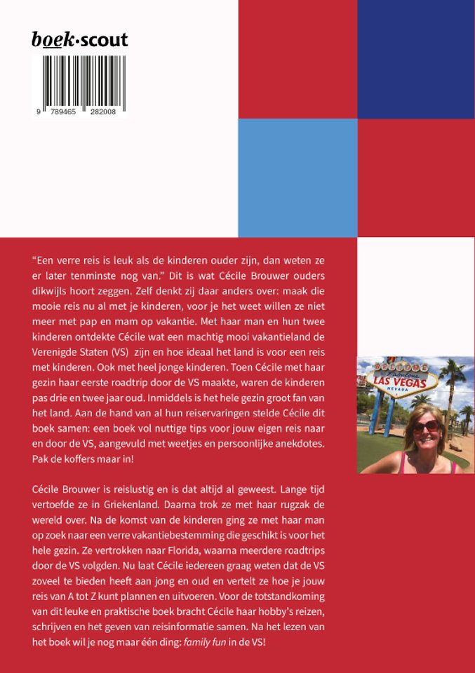 “Een verre reis is leuk als de kinderen ouder zijn, dan weten ze er later tenminste nog van.” Dit is wat Cécile Brouwer ouders dikwijls hoort zeggen. Zelf denkt zij daar anders over: maak die mooie reis nu al met je kinderen, voor je het weet willen ze niet meer met pap en mam op vakantie. Met haar man en hun twee kinderen ontdekte Cécile wat een machtig mooi vakantieland de Verenigde Staten (VS) zijn en hoe ideaal het land is voor een reis met kinderen. Ook met heel jonge kinderen. Toen Cécile met haar gezin haar eerste roadtrip door de VS maakte, waren de kinderen pas drie en twee jaar oud. Inmiddels is het hele gezin groot fan van het land. Aan de hand van al hun reiservaringen stelde Cécile dit boek samen: een boek vol nuttige tips voor jouw eigen reis naar en door de VS, aangevuld met weetjes en persoonlijke anekdotes. Pak de koffers maar in!
