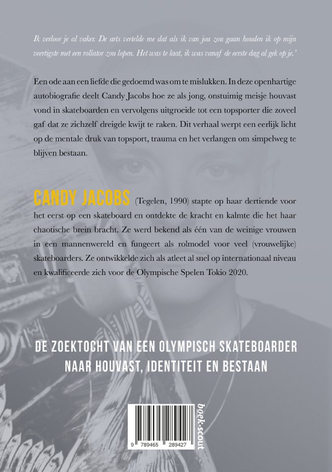 Een ode aan een liefde die gedoemd was om te mislukken. In deze openhartige autobiografie deelt Candy Jacobs hoe ze als jong, onstuimig meisje houvast vond in skateboarden en vervolgens uitgroeide tot een topsporter die zoveel gaf dat ze zichzelf dreigde kwijt te raken. Dit verhaal werpt een eerlijk licht op de mentale druk van topsport, trauma en het verlangen om simpelweg te blijven bestaan.