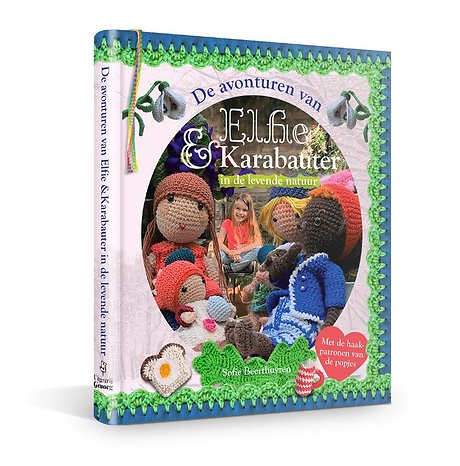 ‘De avonturen van Elfie en Karabauter in de levende natuur’ is het eerste boek van Sofie (2012). Ze tekende de popjes, zodat oma Heleen ze kon haken.