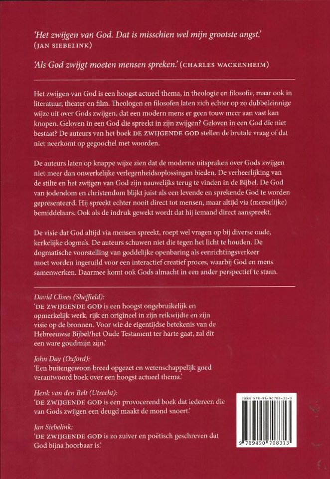 Tweede druk. Twee theologen geven een nieuwe visie op de communicatie tussen goden en mensen. Het zwijgen van God is een hoogst actueel thema, in theologie en filosofie, maar ook in literatuur, theater en film. Theologen en filosofen laten zich echter op zo dubbelzinnige wijze uit over Gods zwijgen, dat een modern mens er geen touw meer aan vast kan knopen. Geloven in een God die spreekt in zijn zwijgen? Geloven in een God die niet bestaat?