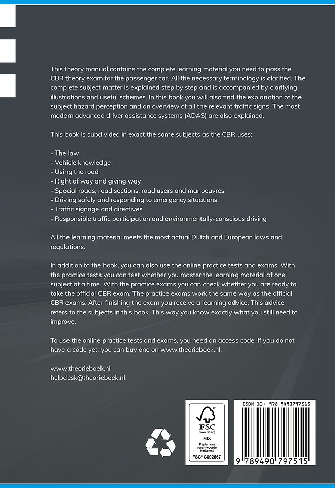 The complete theory manual for the CBR theory exam passenger car, divided into the 8 CBR subjects