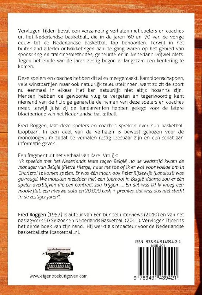 Fred Roggen (1957) is auteur van Een bundel interviews (2010) en van het naslagwerk 50 Seizoenen Nederlands Basketball (2011). Vervlogen Tijden is het derde boek van zijn hand. Hij werkt als redacteur voor de Nederlandse basketballsite Ibasketball.nl.