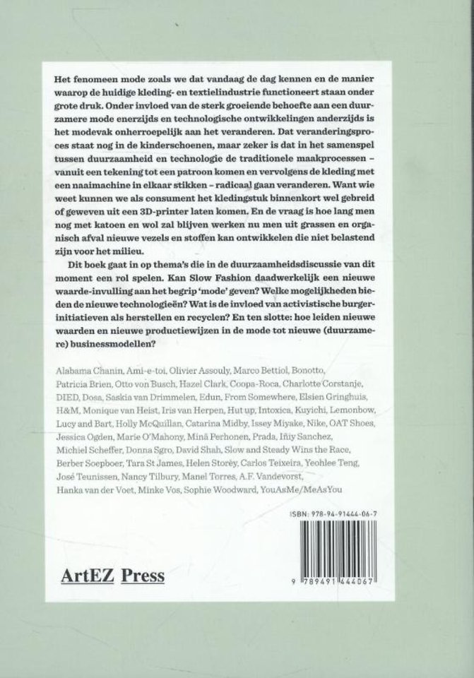 The growing need for a more sustainable fashion industry, in combination with technological developments in textiles and production, is causing radical alterations in contemporary fashion. Although change is just beginning, traditional processes and materials are already under enormous pressure. This book tackles relevant themes in the sustainability dialogue today. What possibilities lie within new technologies, and how do public initiatives like reuse and recycling impact progress? Finally, how do new values and ways of producing fashion result in better business models? Includes work by fashion designers Iris van Herpen, Issey Miyake, Holly McQuillan and many others.
