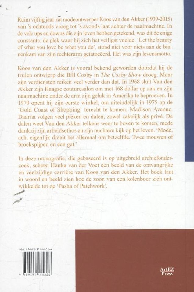 Koos van den Akker is vooral bekend geworden doordat hij de truien ontwierp die Bill Cosby in The Cosby Show droeg. Maar zijn verdiensten reiken veel verder dan dat. In 1968 sluit Van den Akker zijn Haagse couturesalon om met 168 dollar op zak en zijn naaimachine onder de arm zijn geluk in Amerika te beproeven. In 1970 opent hij zijn eerste winkel, om uiteindelijk in 1975 op de 'Gold Coast of Shopping' terecht te komen: Madison Avenue. Daarna volgen veel pieken en dalen, zowel zakelijk als privé. In deze monografie, die gebaseerd is op uitgebreid archiefonderzoek, schetst Hanka van der Voet een beeld van de omvangrijke en veelzijdige carrière van Koos van den Akker.
