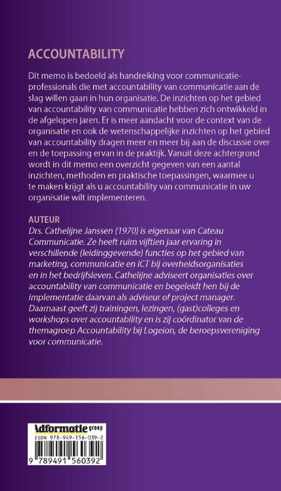 Dit memo is bedoeld als handreiking voor communicatieprofessionals die met accountability van communicatie aan de slag willen gaan in hun organisatie. De inzichten op het gebied van accountability van communicatie hebben zich ontwikkeld in de afgelopen jaren. Er is meer aandacht voor de context van de organisatie en ook de wetenschappelijke inzichten op het gebied van accountability dragen meer en meer bij aan de discussie over en de toepassing ervan in de praktijk. Vanuit deze achtergrond wordt in dit memo een overzicht gegeven van een aantal inzichten, methoden en praktische toepassingen, waarmee u te maken krijgt als u accountability van communicatie in uw organisatie wilt implementeren.