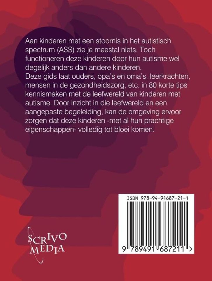 Deze gids laat ouders, opa's en oma's, leerkrachten, mensen in de gezondheidszorg, etc. in 80 korte tips kennismaken met de leefwereld van kinderen met autisme. Door inzicht in die leefwereld en een aangepaste begeleiding, kan de omgeving ervoor zorgen dat deze kinderen -met al hun prachtige eigenschappen- volledig tot bloei komen.