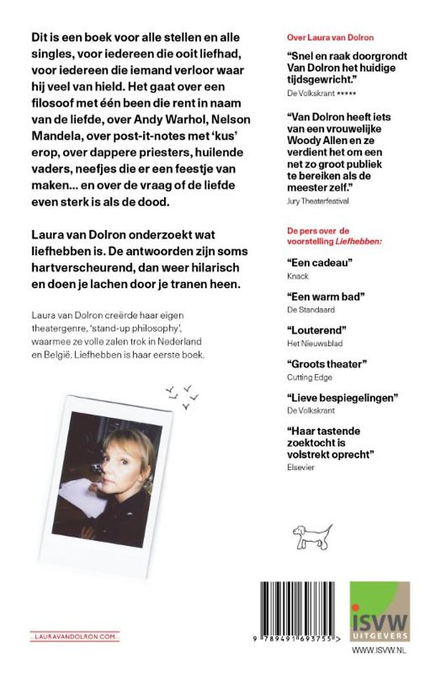 Liefhebben is een openhartig en hoopvol boek over wat liefhebben écht is. Theatermaker Laura van Dolron zoekt als een archivaris van de liefde in haar hoofd, in haar hart en in de wereldgeschiedenis naar mensen die daden stelden en die ons leren wat liefhebben is. Liefhebben is meer dan romantiek. In het boek staan heldendaden, kleine gebaren of ontroerende vergissingen: gefeliciteerd in plaats van gecondoleerd zeggen en daar samen om lachen.