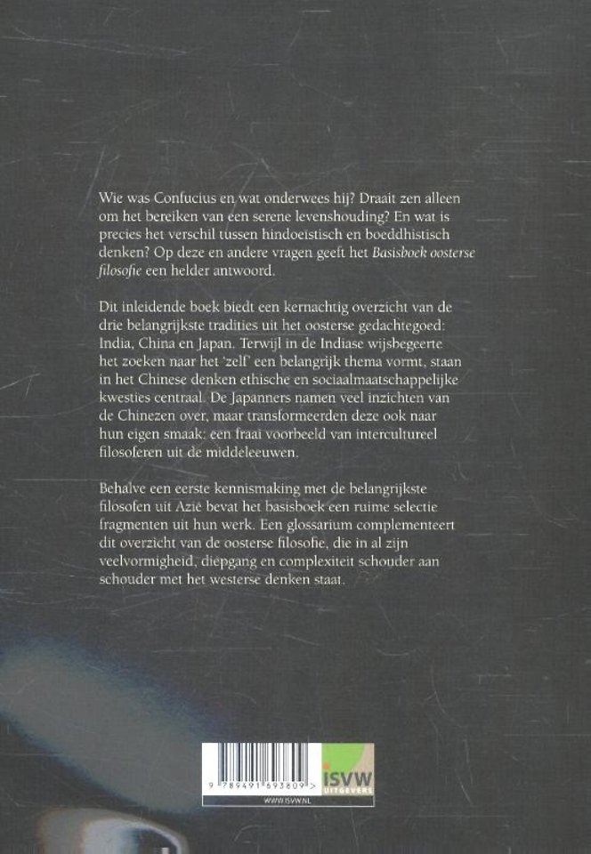 Behalve een eerste kennismaking met de belangrijkste filosofen uit Azië bevat het basisboek een ruime selectie fragmenten uit hun werk. Een glossarium complementeert dit overzicht van de oosterse filosofie, die in al haar veelvormigheid, diepgang en complexiteit schouder aan schouder met het westerse denken staat.