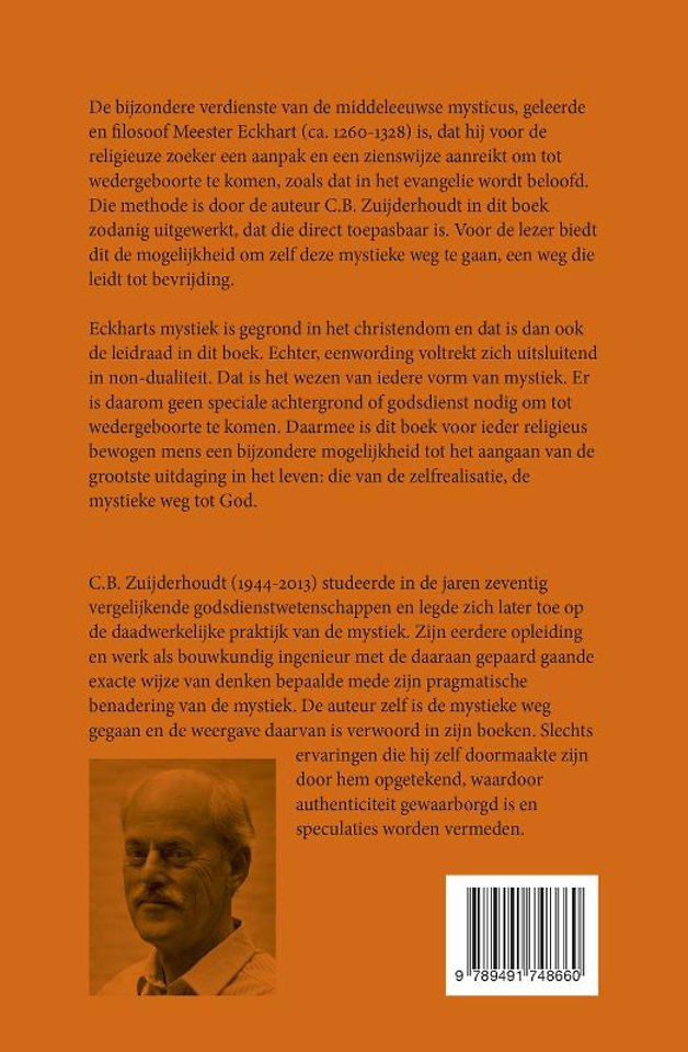 De bijzondere verdienste van de middeleeuwse mysticus, geleerde en filosoof Meester Eckhart (ca. 1260-1328) is, dat hij voor de religieuze zoeker een aanpak en een zienswijze aanreikt om tot wedergeboorte te komen, zoals dat in het evangelie wordt beloofd. Die methode is door de auteur C.B. Zuijderhoudt in dit boek zodanig uitgewerkt, dat die direct toepasbaar is. Voor de lezer biedt dit de mogelijkheid om zelf deze mystieke weg te gaan, een weg die leidt tot bevrijding.