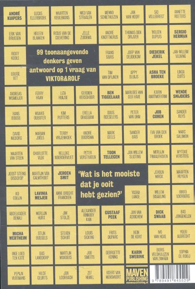 'Dit is het mooiste ooit' is de derde editie in de succesvolle reeks ‘Nederland in ideeën’, waarin toonaangevende wetenschappers, ondernemers en kunstenaars hun meest waardevolle inzichten delen. Dit jaar geven onder anderen André Kuipers, Dick Swaab, Sergio Herman, Micha Wertheim, Karin Swerink, Gustaaf Peek, Lavinia Meijer, Toon Tellegen, Peter van Uhm, Ben Tiggelaar, Nelleke Noordervliet, Maaike Ouboter, Job Cohen en 86 anderen antwoord op de vraag van Viktor&Rolf: ‘Wat is het mooiste dat je ooit hebt gezien?’