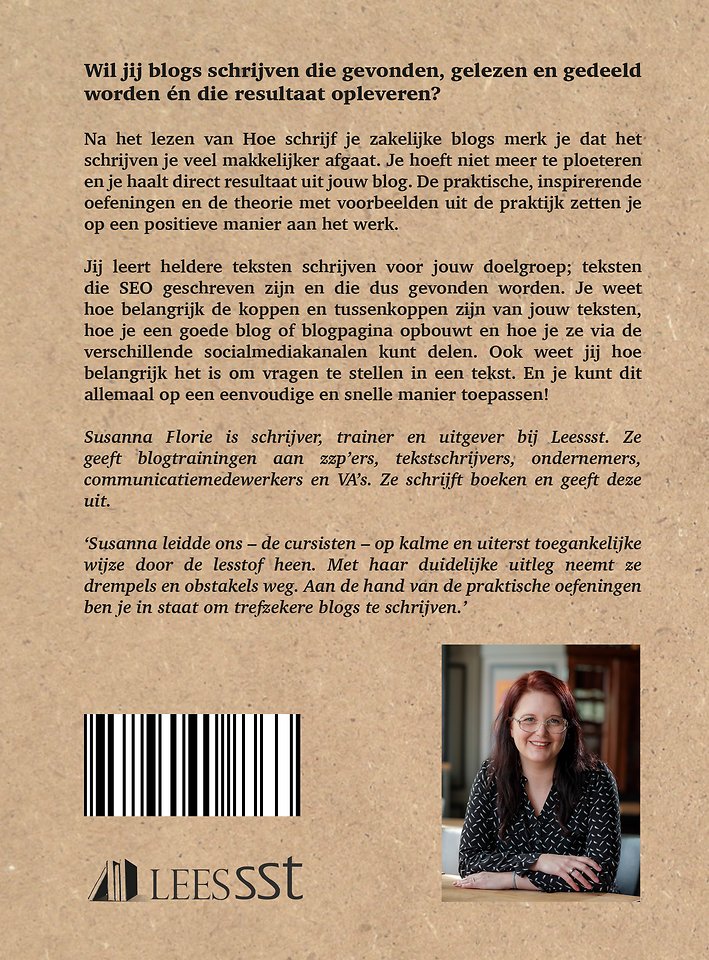 Na het lezen van Hoe schrijf je zakelijk blogs merk je dat het schrijven je veel makkelijker afgaat, je hoeft niet meer te ploeteren en je haalt direct resultaat uit jouw blog. De praktische, inspirerende oefeningen en de theorie met voorbeelden uit de praktijk zetten je op een positieve manier aan het werk.