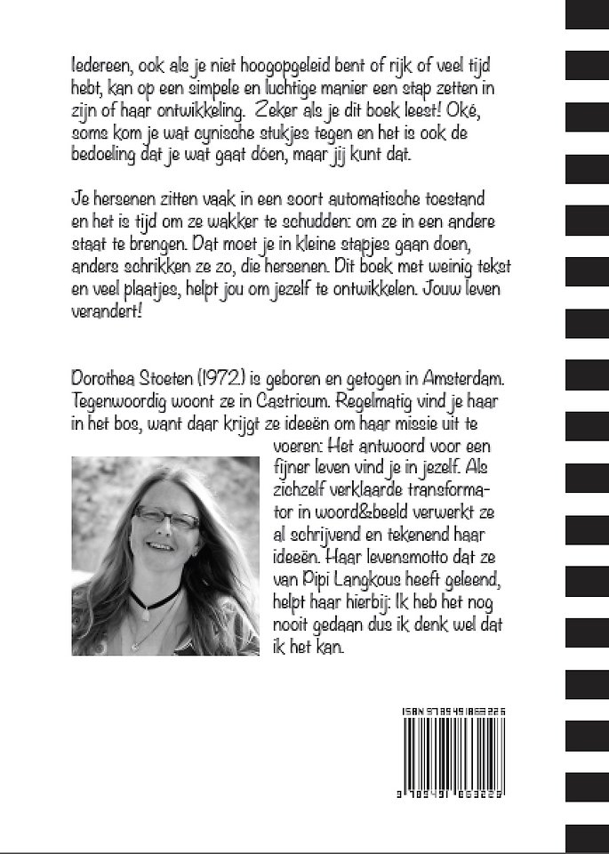Je hersenen zitten vaak in een soort automatische toestand en het is tijd om ze wakker te schudden: om ze in een andere staat te brengen. Dat moet je in kleine stapjes gaan doen, anders schrikken ze zo, die hersenen. Dit boek met weinig tekst en veel plaatjes, helpt jou om jezelf te ontwikkelen. Jouw leven verandert!