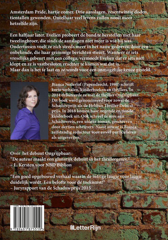 Een halfjaar later. Evelien probeert de band te herstellen met haar tweelingbroer, die sinds de aanslagen niet meer is wie hij was. Ondertussen voelt ze zich steeds meer in het nauw gedreven door een onbekende, die haar grimmige berichten stuurt. Wanneer er iets vreselijk gebeurt met een collega, vermoedt Evelien dat er iets niet klopt en ze is vastbesloten erachter te komen wat dat is. Maar dan is het te laat en ze wordt voor een onmogelijke keuze gesteld.
