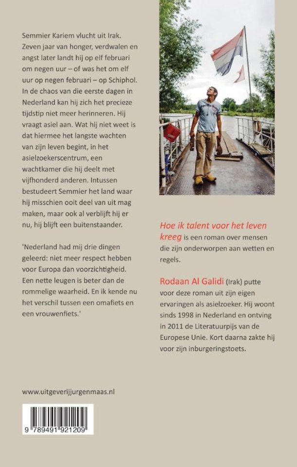 'Hoe ik talent voor het leven kreeg' is een roman over mensen die onderworpen zijn aan wetten en regels. Rodaan Al Galidi (Irak) putte voor deze roman uit zijn eigen ervaringen als asielzoeker. Hij woont sinds 1998 in Nederland en ontving in 2011 de Literatuurprijs van de Europese Unie voor zijn roman 'De autist en de postduif'. Kort daarna zakte hij voor zijn inburgeringstoets.