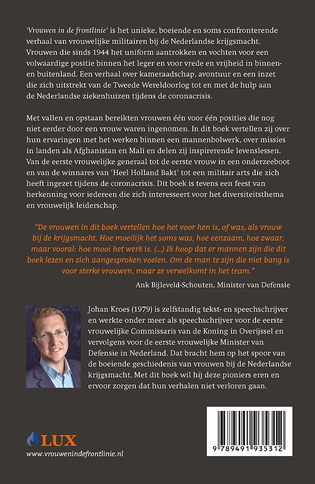 Met vallen en opstaan bereikten vrouwen één voor één posities die nog niet eerder door een vrouw waren ingenomen. In dit boek vertellen vijftig vrouwelijke militairen over hun ervaringen met het werken binnen een mannenbolwerk, over missies in landen als Afghanistan en Mali en delen zij inspirerende levenslessen. Van de eerste vrouwelijke generaal tot de eerste vrouw in een onderzeeboot en van de winnares van ‘Heel Holland Bakt’ tot een militair arts die zich heeft ingezet tijdens de coronacrisis.