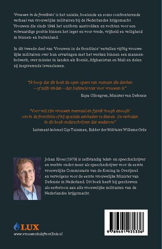 In dit tweede deel van ‘Vrouwen in de frontlinie’ vertellen vijftig vrouwelijke militairen over hun ervaringen met het werken binnen een mannenbolwerk, over missies in landen als Bosnië, Afghanistan en Mali en delen zij inspirerende levenslessen. Van soldaat tot generaal en van de pioniers bij de vrouwenkorpsen tot en met de eerste vliegende, varende en vechtende vrouwelijke militairen.