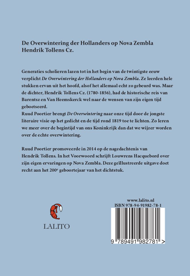 Ruud Poortier promoveerde in 2014 op de nagedachtenis van Hendrik Tollens. In het Voorwoord schrijft Louwrens Hacquebord over zijn eigen ervaringen op Nova Zembla. Deze geïllustreerde uitgave doet recht aan het 200e geboortejaar van het dichtstuk.
