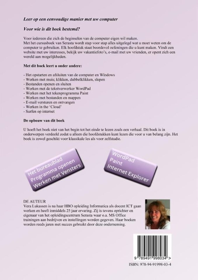 Vera Lukassen is na haar HBO opleiding Informatica als docent ICT gaan werken en heeft inmiddels 25 jaar ervaring. Zij is tevens oprichter en eigenaar van het opleidingscentrum Serasta waar o.a. MS Office trainingen aan bedrijven en instellingen worden gegeven. Haar boeken worden reeds jaren met succes gebruikt door deze onderneming.