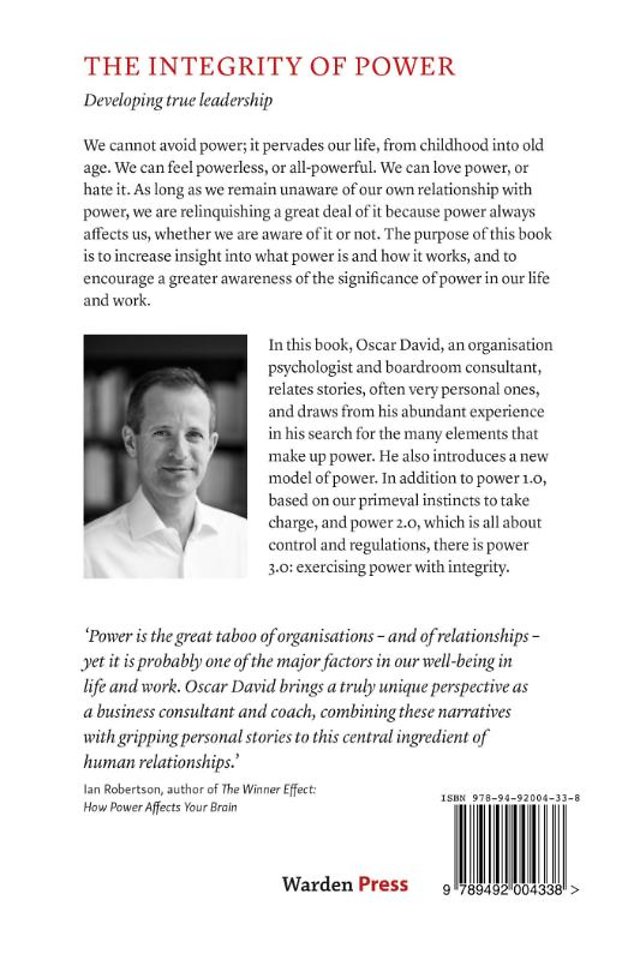 In this book, Oscar David, an organisation psychologist and boardroom consultant, relates stories, often very personal ones, and draws from his abundant experience in his search for the many elements that make up power. He also introduces a new model of power. In addition to power 1.0, based on our primeval instincts to take charge, and power 2.0, which is all about control and regulations, there is power 3.0: exercising power with integrity.