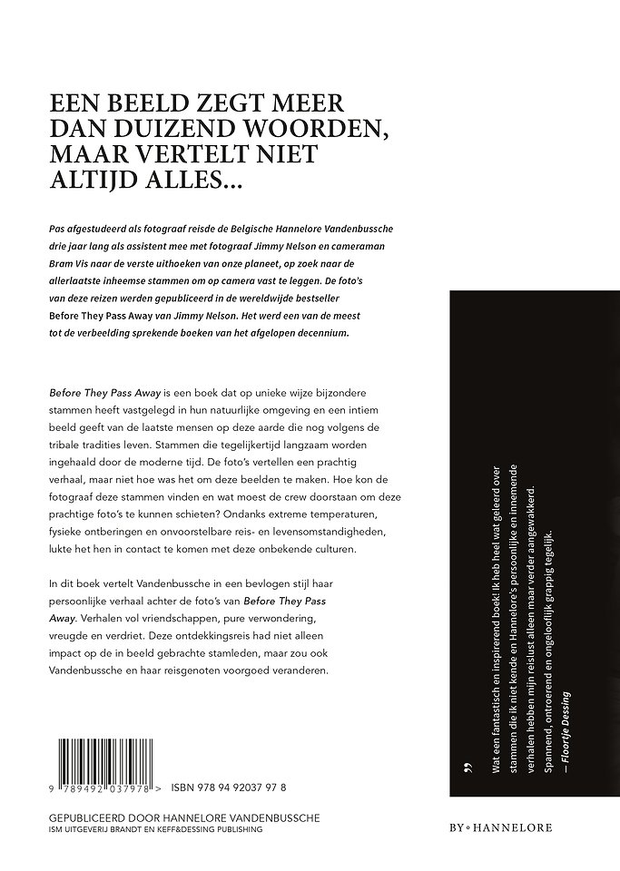 Pas afgestudeerd als fotograaf reisde de Belgische Hanne/ore Vandenbussche drie jaar lang als assistent mee met fotograaf Jimmy Nelson en cameraman Bram Vis naar de verste uithoeken van onze planeet, op zoek naar de allerlaatste inheemse stammen om op camera vast te leggen. De foto's van deze reizen werden gepubliceerd in de wereldwijde bestseller