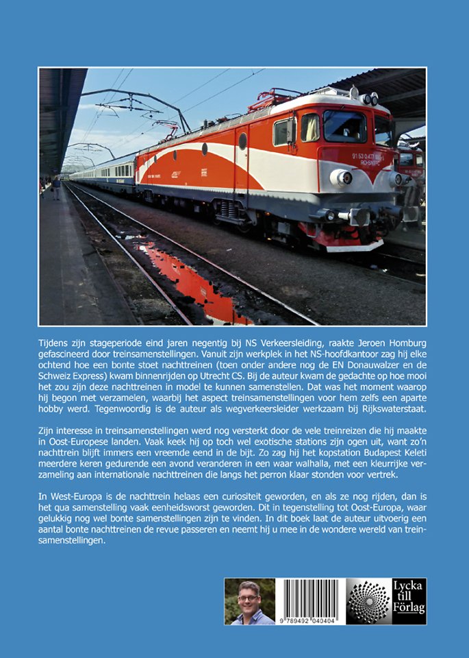 In West- Europa is de nachttrein helaas een curiositeit geworden, en als ze nog rijden, dan is het qua samenstelling vaak eindheidsworst geworden. Dit in tegenstelling tot Oost-Europa, waar gelukkig nog wel bonte samenstellingen zijn te vinden. In dit boek laat de auteur uitvoerig een aantal bonte nachttreinen de revue passeren en neemt hij u mee in de wondere wereld van treinsamenstellingen.