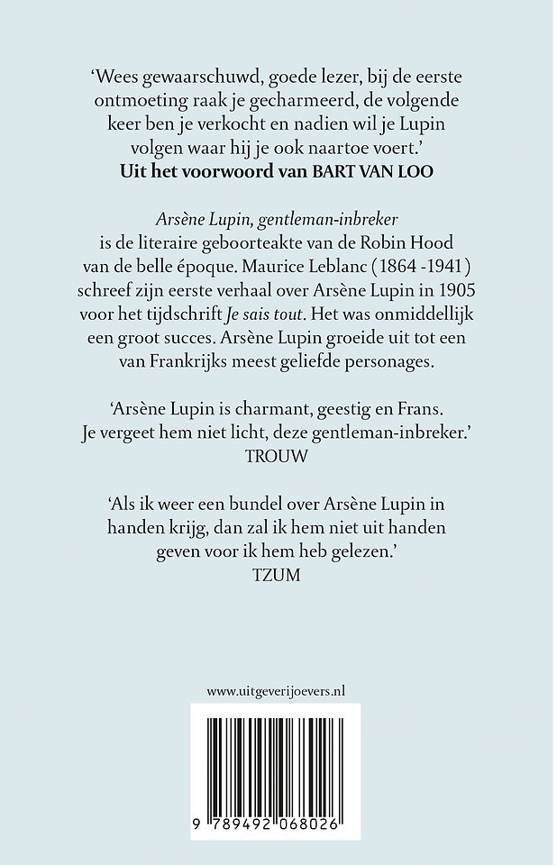 'Arsène Lupin, gentleman-inbreker is charmant, geestig en vooral in de eerste 4 verhalen verrassend – zelfs voor lezers die al jaren bekend zijn met de stunts van The Saint, Batman, Bond, The Shadow, Robert Redford en Paul Newman in The Sting, Harry Houdini, en de hele parade aan dieven, speurders, oplichters, illusionisten en andere cultfiguren uit de vorige eeuw. Allemaal zijn ze Arsène Lupin in een andere vermomming. Je vergeet hem niet licht, deze gentleman-inbreker.'